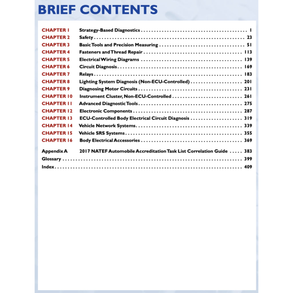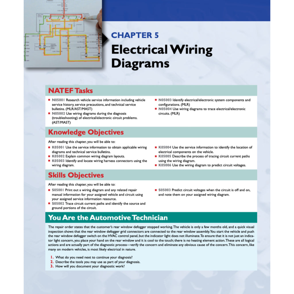 • Reviews basic electrical concepts, wiring diagrams, and circuit diagnosis;