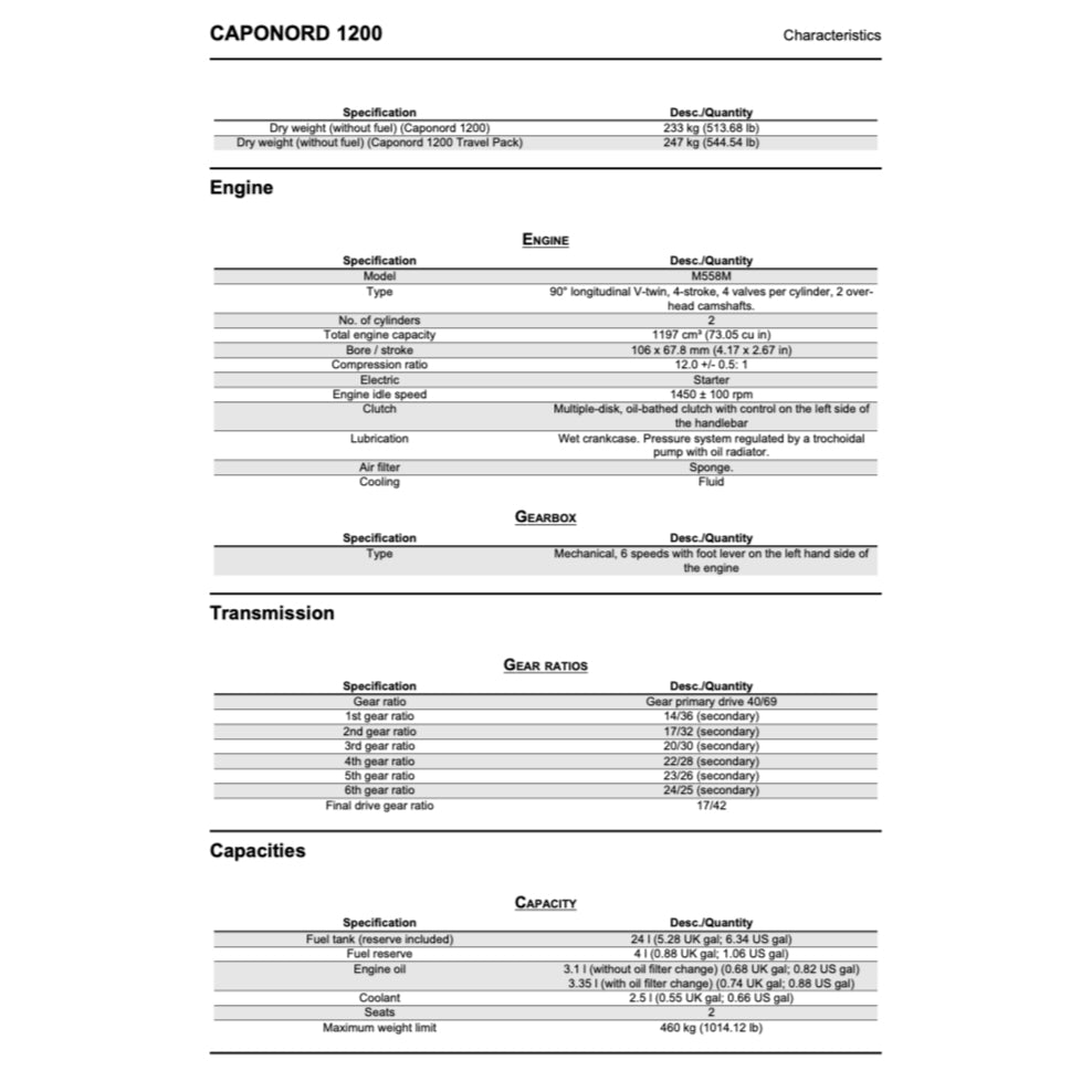 APRILIA CAPONORD 1200 2013-2018 Full Manual Set – Repair & Maintenance Manual and Spare Parts Catalog and User Handbook