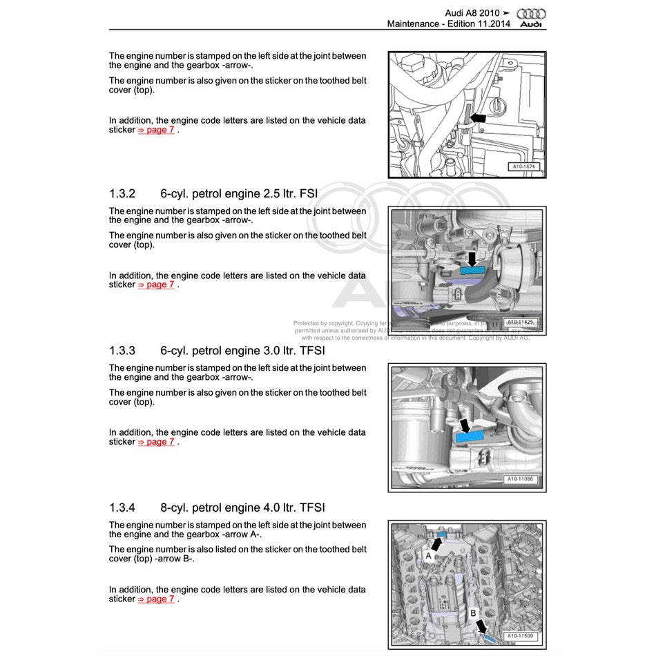 - 8-cylinder direct injection engine (4.0L. 4-valve TFSI – CEUA, CGTA, CTFA, CTGA)