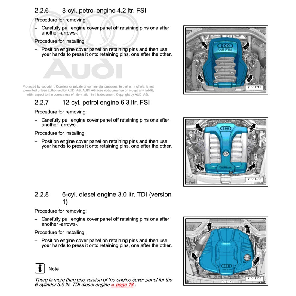 AUDI ENGINE ORIGINAL FACTORY SERVICE WORKSHOP MANUAL IN PDF FORMAT (200-500 PAGES) AVAILABLE BOTH AS DOWNLOADABLE LINK.