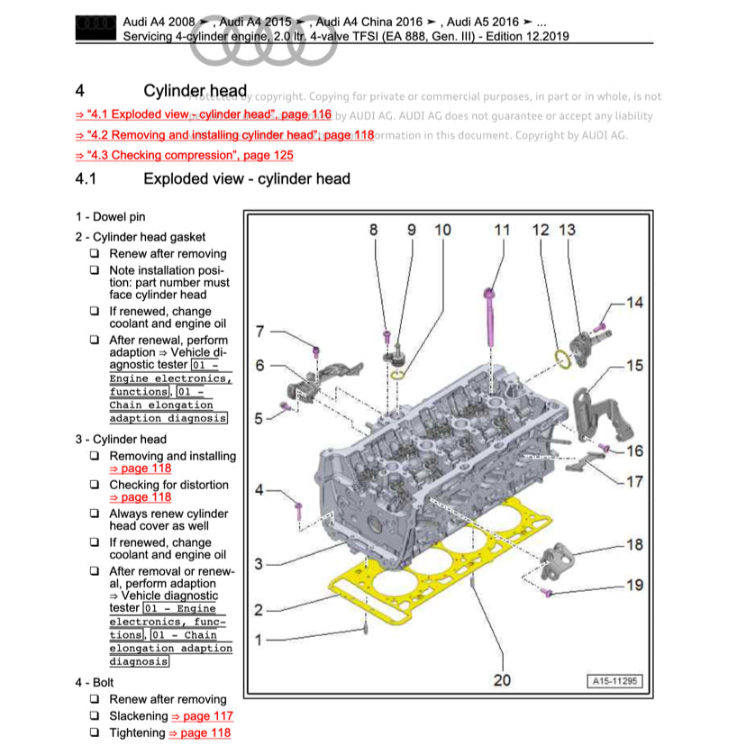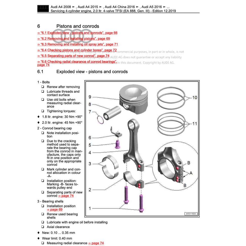 ENGINE FEATURED IN THIS MANUAL: 2.0L TFSI l4; 3.2 L V6 FSI; 3.0 L TDI diesel V6