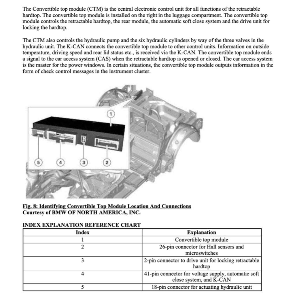 A must have for BMW workshop operatives and Z4 owners who know better what headache it could be to track down a squeaking seal, water ingress or hydraulic system failure. This manual goes in-depth into service and repair information for the Z4 E89 convertible top system: Gap adjustment, canvas repair, micro switch, lubrication, hydraulics, you name it. It is riddled with closeups pictures and pointers.