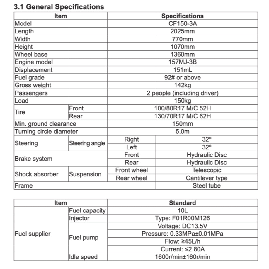 CFMOTO 150NK CF150-3A 2019-2023 Full Manual Set – Repair & Maintenance Manual and Spare Parts Catalog