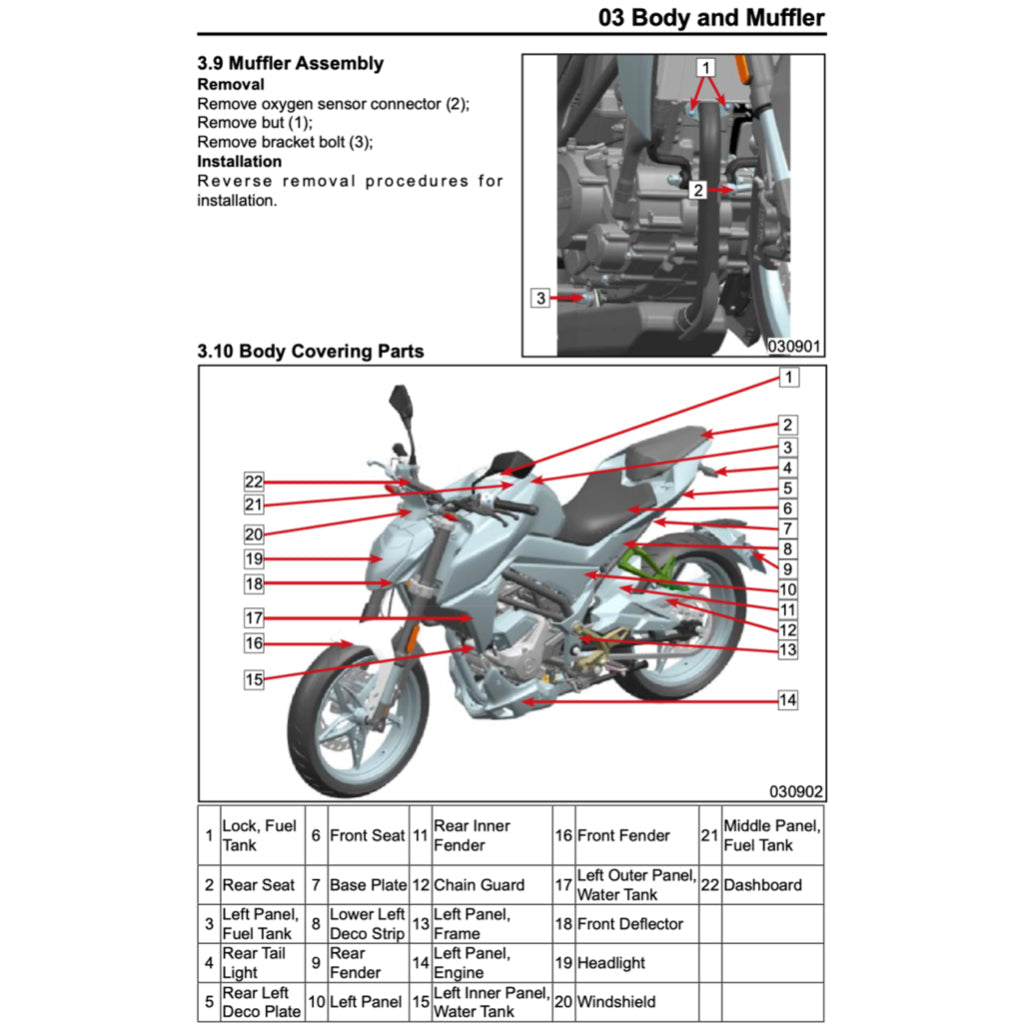 CFMOTO 250NK CF250/A 2018-2023 Full Manual Set – Repair & Maintenance Manual and Spare Parts Catalog and User Handbook