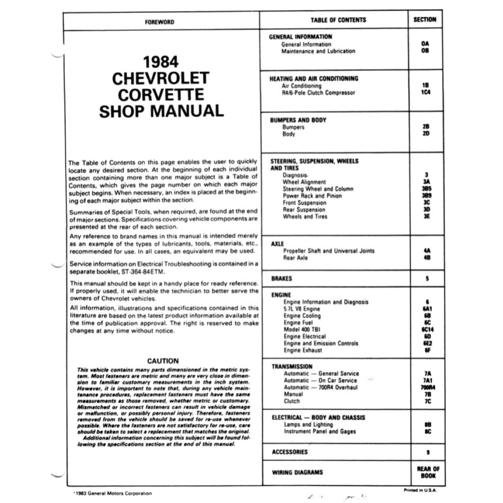 CHEVROLET CORVETTE C4 1984-1996 Full Manual Set – Repair & Maintenance Manual