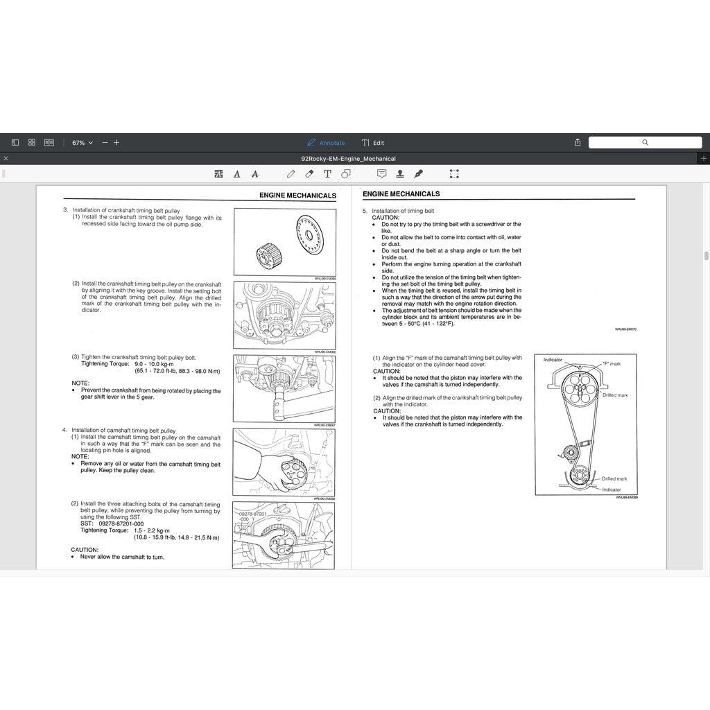 THIS IS THE COMPLETE WORKSHOP MANUAL FOR THE DAIHATSU FEROZA/ROCKY WHICH INCLUDES 1.6L ENGINE HD 16V SOHC EFI; MANUAL TRANSMISSION, BODY/CHASSIS AND BODY WIRING DIAGRAM. THE MANUAL FEATURES HUNDREDS OF TUTORIAL PICTURES, EXPLODED DIAGRAMS. TORQUE SETTING, YOU NAME IT.