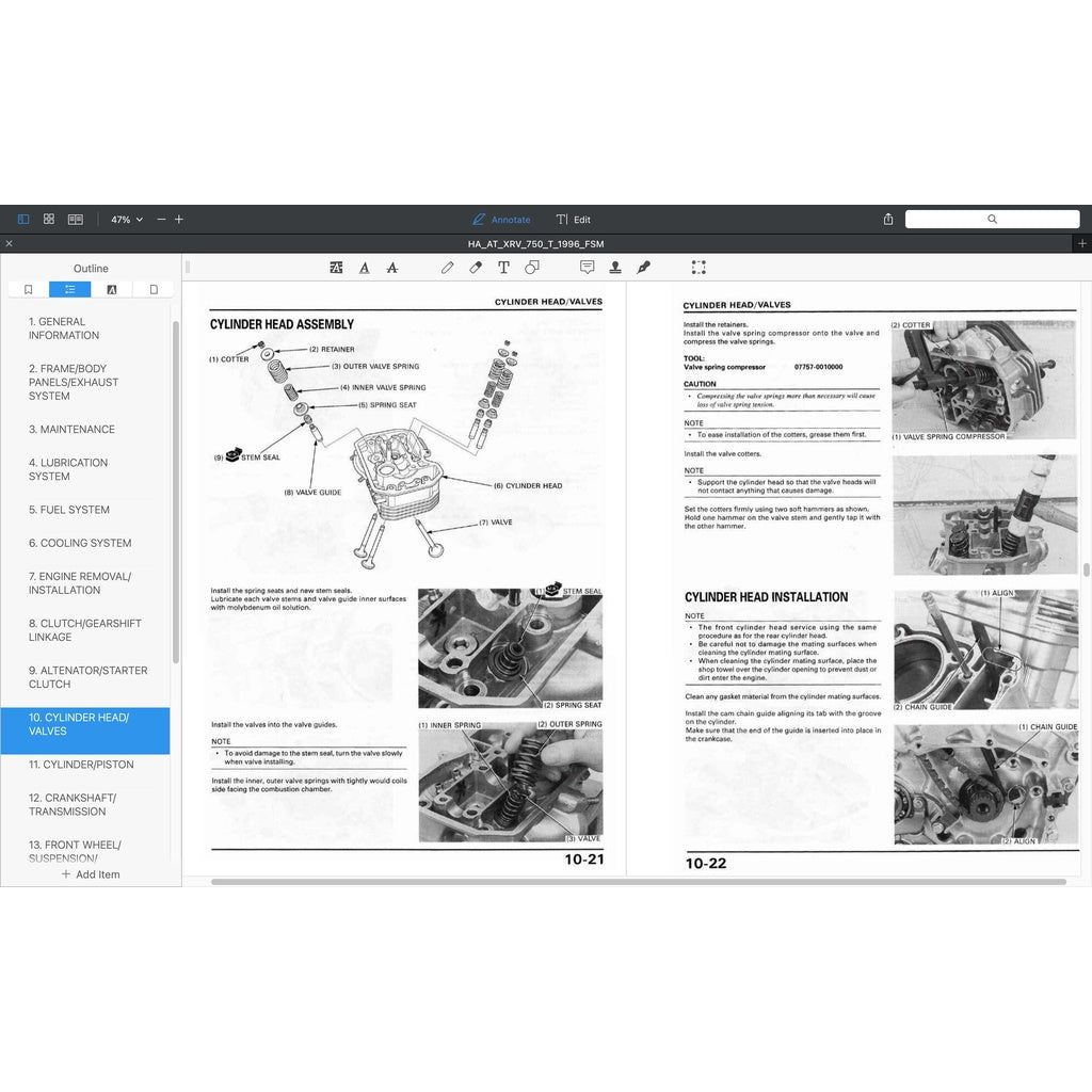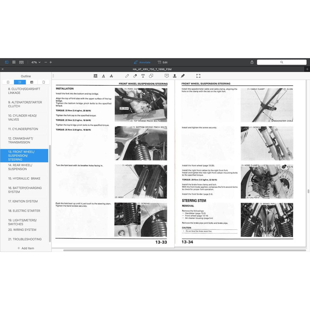 HONDA AFRICA TWIN XRV 750 T 1996-2000 Full Manual Set – Repair & Maintenance Manual and Spare Parts Catalog and User Handbook