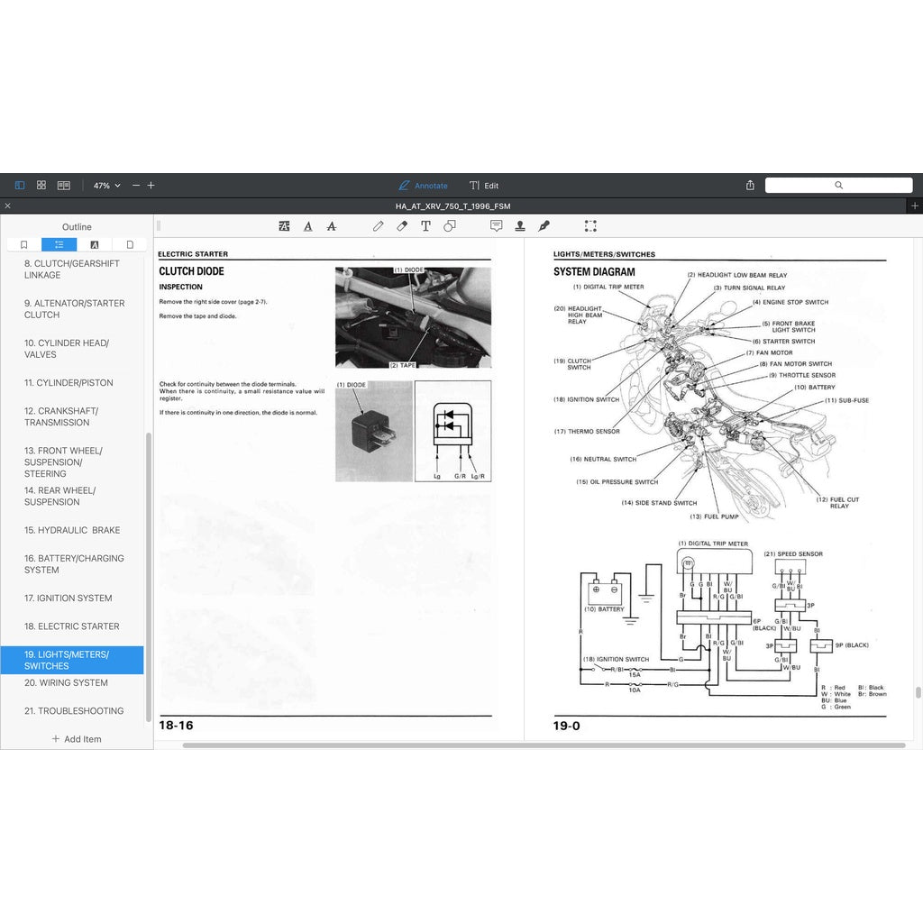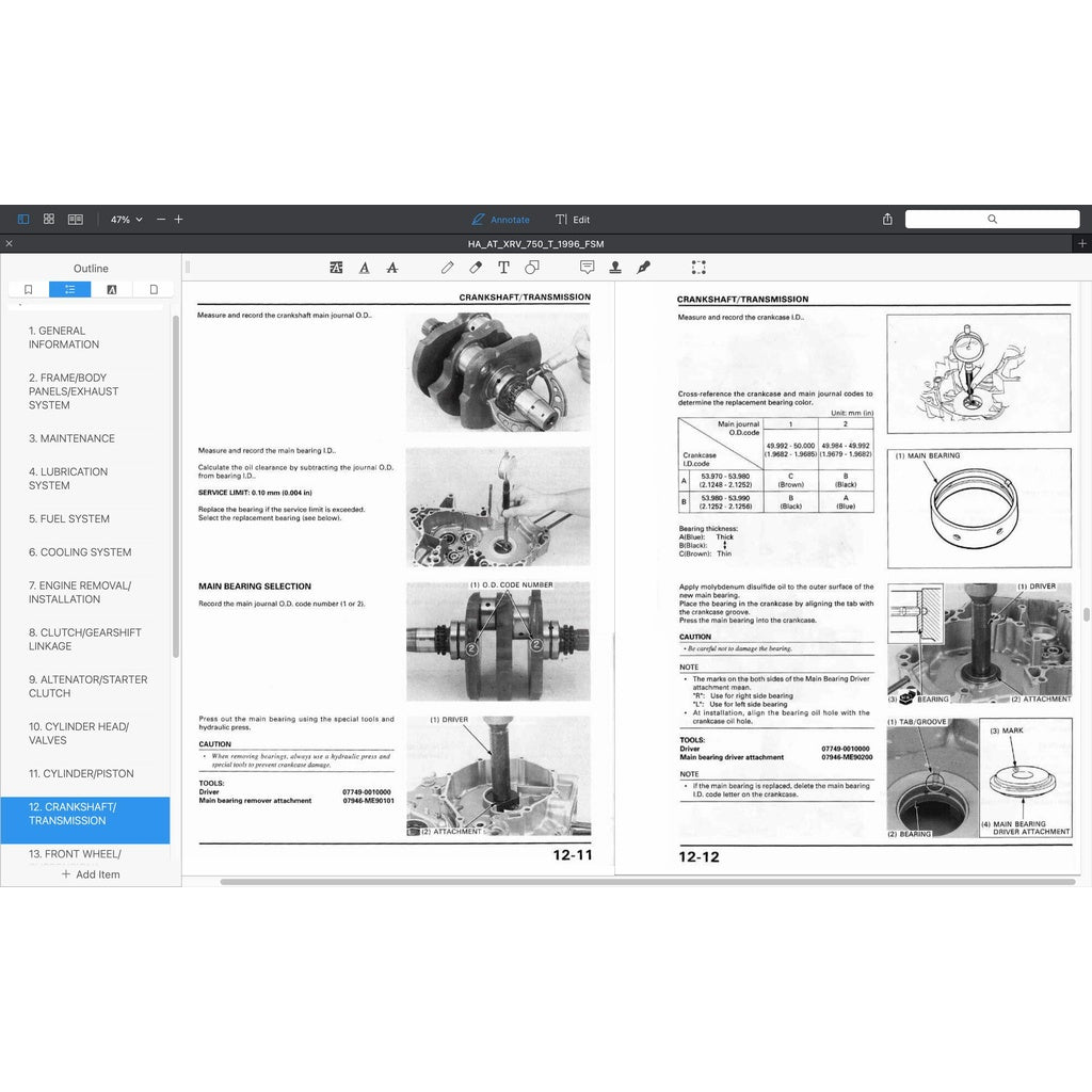 This is a comprehensive workshop manual for both technicians and DIY bike mechanic. This manual will help you restore, repair and maintain your Africa Twin just like professional mechanic. Very easy step by step instructions with hundreds of diagrams and schematics. Covers all aspects of the bike from engine to suspension, wheels, fuel supply, electrical and trouble shooting tips. If you can fix a Matchbox, with this manual you can fix your Africa Twin A to Z - no contest.