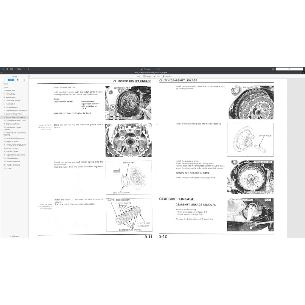 HONDA CBR600F4i 2001-2006 Full Manual Set – Repair & Maintenance Manual and Spare Parts Catalog and User Handbook