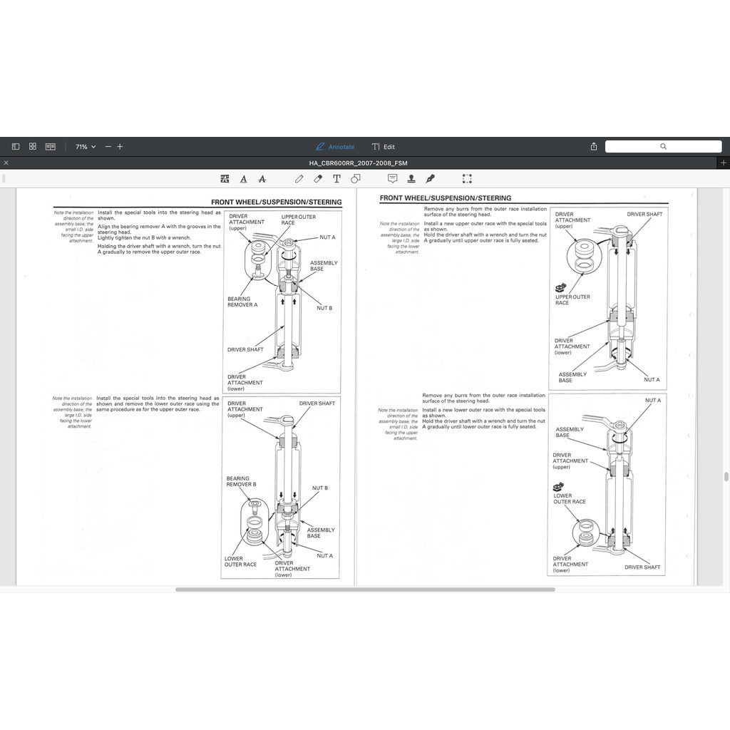 HONDA CBR600RR 2007-2008 Full Manual Set – Repair & Maintenance Manual and Spare Parts Catalog and User Handbook - CBR 600 RR