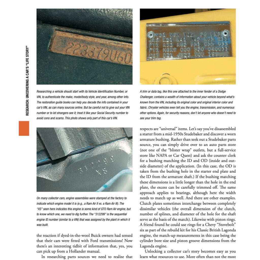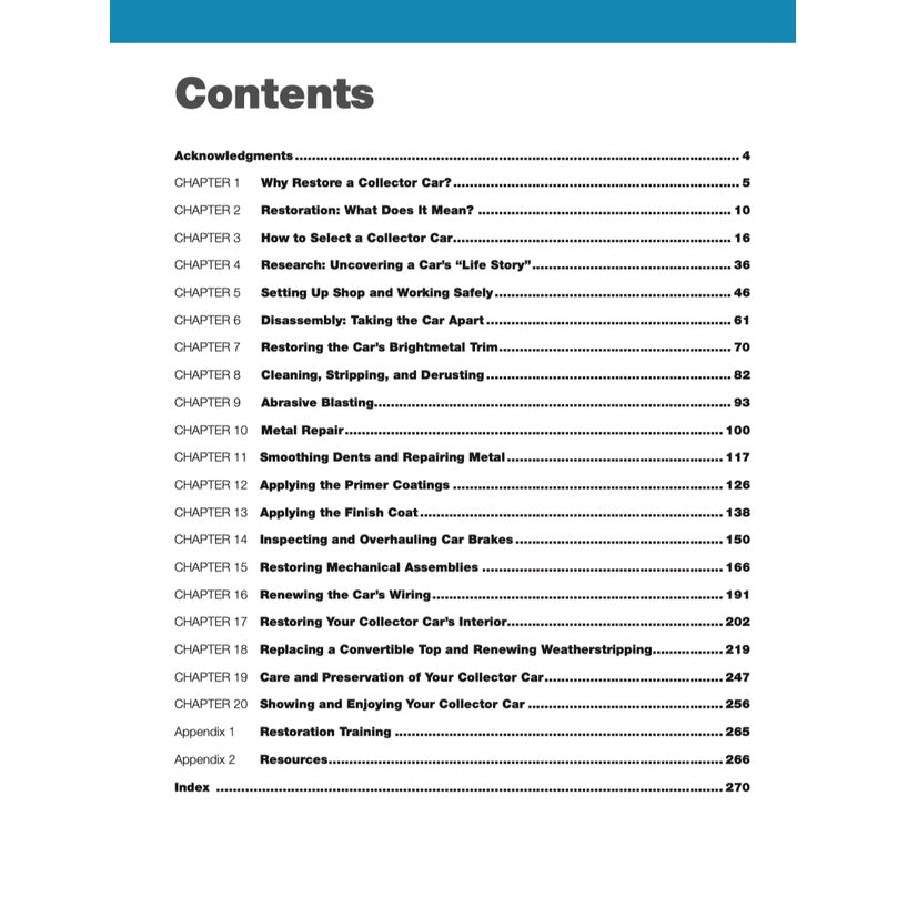 The book provide thoroughly updated information regarding later domestic and foreign collector cars, as well as new techniques and products that restorers will find useful for current or future projects. Using this book as a guide, anyone with a modicum of skill and mechanical ability will be able to confidently tackle even the most daunting collector car restoration projects. From setting up your workspace for maximum productivity and safety, to tips and techniques for restoring bodies, paint, engines, drivelines, suspensions, upholstery, glass, brakes, and wheels—even steps for updating safety systems while maintaining collectability—this book covers every aspect of a restoring a classic car to its original glory.