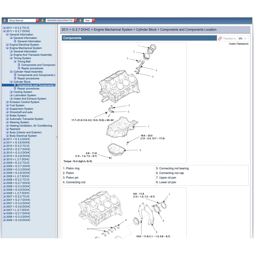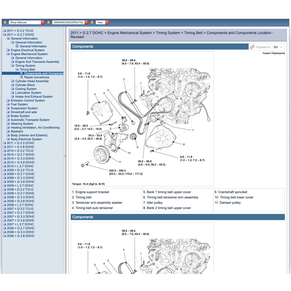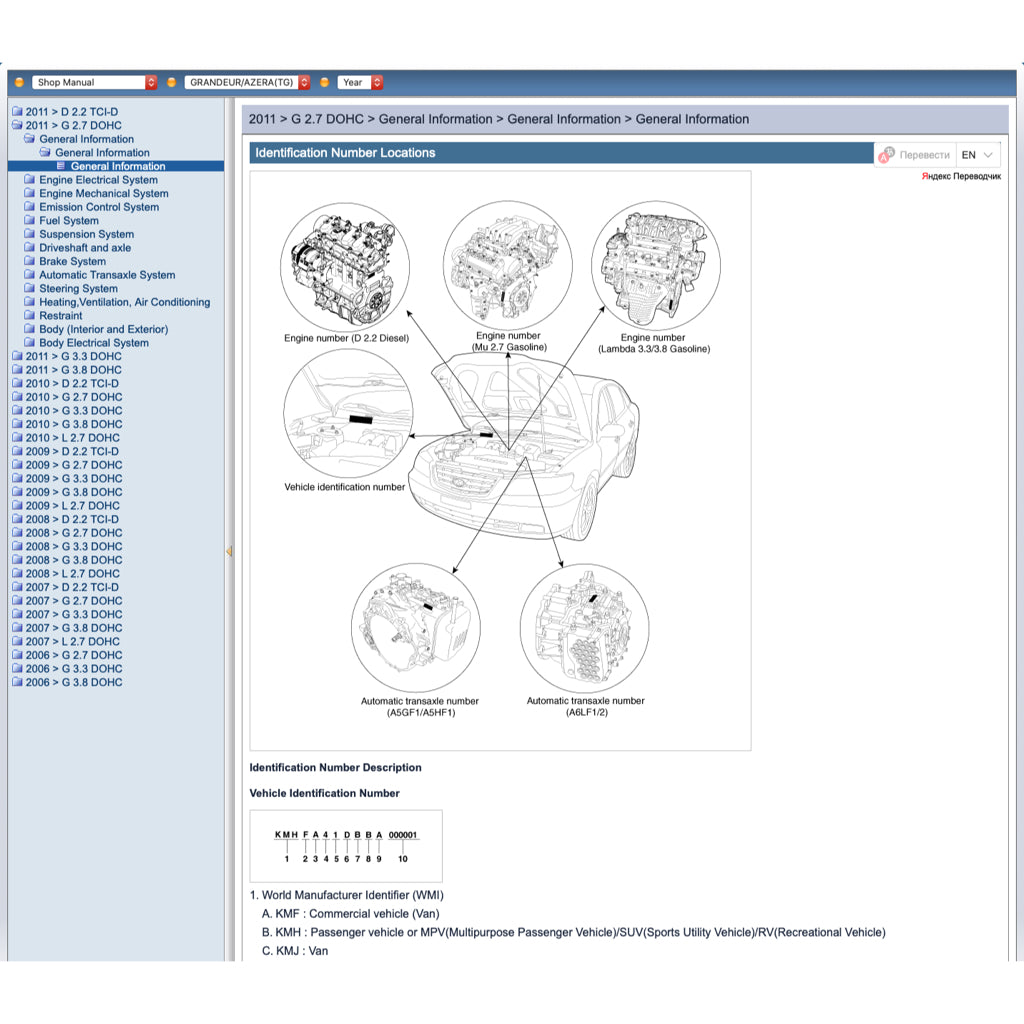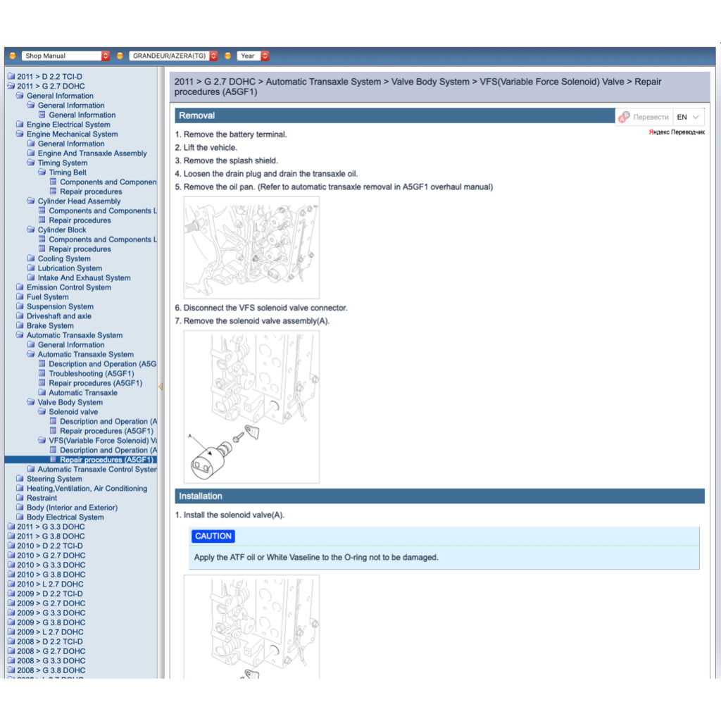 HYUNDAI GRANDEUR AZERA TG 2005-2011 Full Manual Set – ONLINE Repair & Maintenance Manual