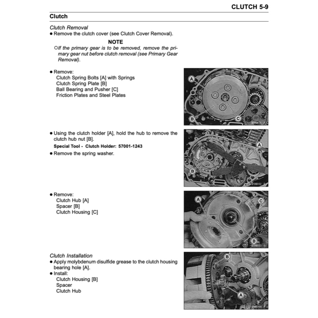 This is a comprehensive workshop manual for both technicians and DIY bike mechanic. This manual will help you restore, repair and maintain your KAWASAKI just like professional mechanic. Very easy step by step instructions with hundreds of diagrams and schematics. Covers all aspects of the bike from engine to suspension, wheels, fuel supply, electrical and trouble shooting tips. If you can fix a Matchbox, with this manual you can fix your Kawasaki A to Z.