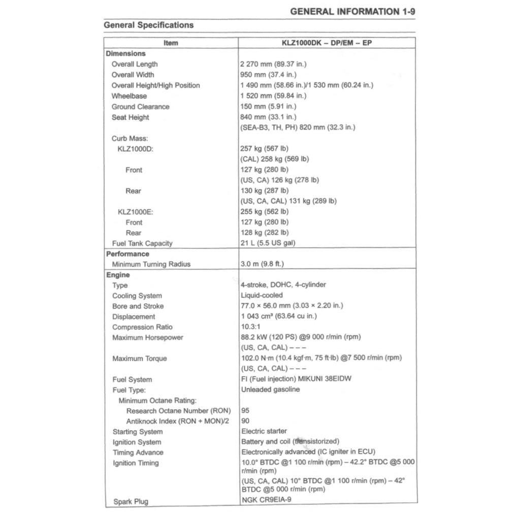 KAWASAKI VERSYS KLZ1000 SE 2019-2023 Full Manual Set – Repair & Maintenance Manual and Spare Parts Catalog and User Handbook