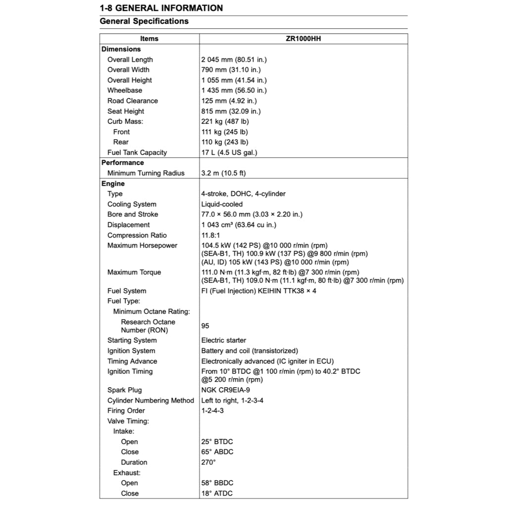 KAWASAKI Z1000 2017-2022 Full Manual Set – Repair & Maintenance Manual and Spare Parts Catalog and User Handbook