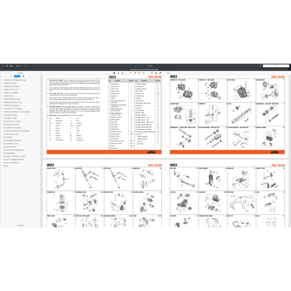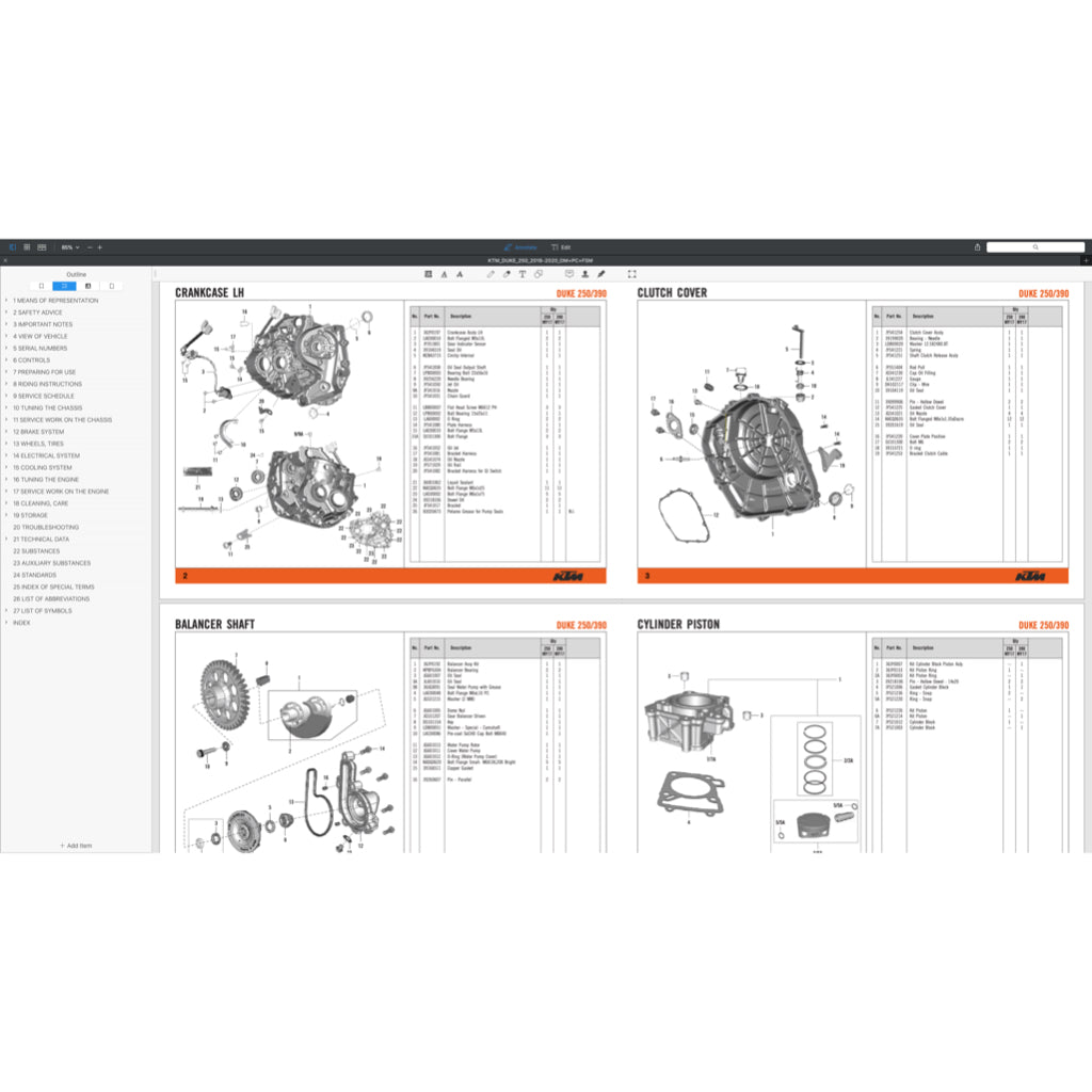 KTM DUKE 250 2015-2020 Full Manual Set – Repair & Maintenance Manual and Spare Parts Catalog and User Handbook