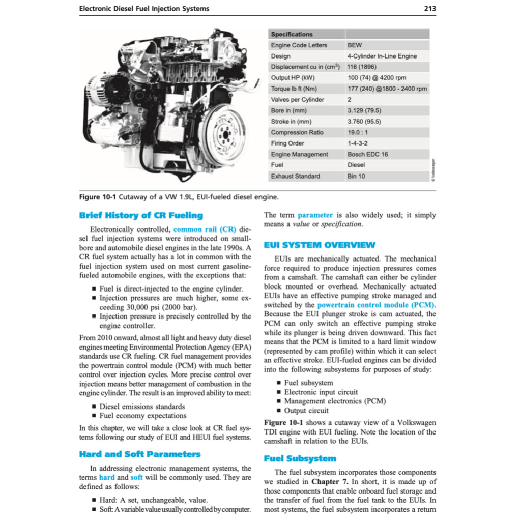 Using a modularized structure, the book helps the reader achieve a conceptual grounding in diesel engine technology. After exploring the tools required to achieve hands-on technical competency, the text explores major engine subsystems and fuel management systems used over the past decade, including the common rail fuel systems that manage almost all current light duty diesel engines. In addition, this text covers engine management systems,
