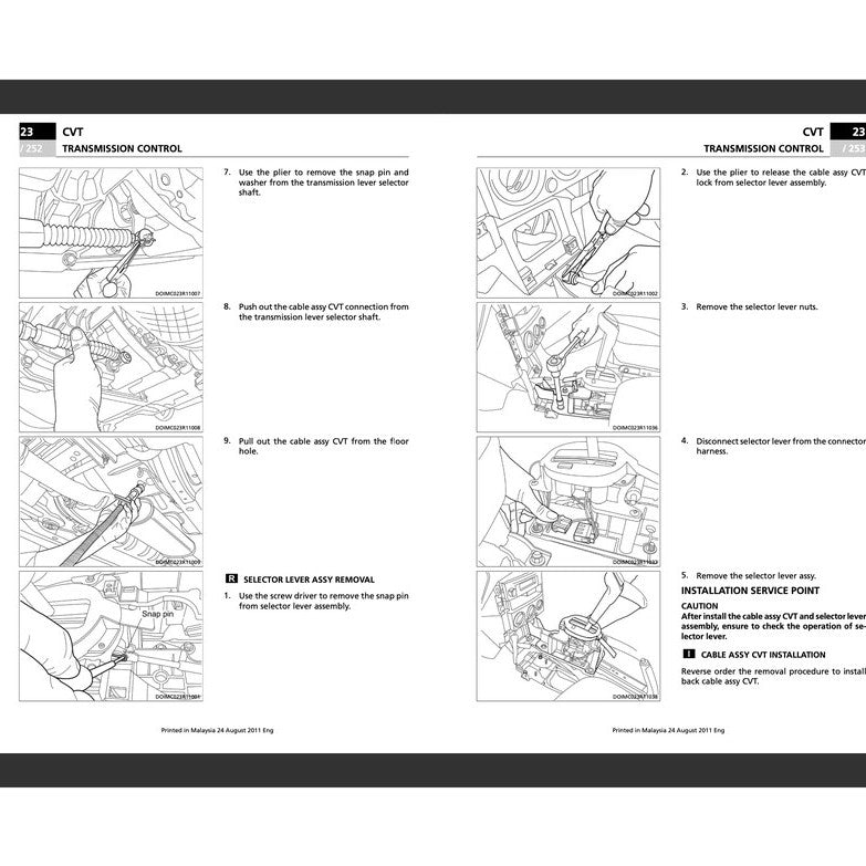 Mechanical service manual (Chassis bulletin). Large place is left to troubleshooting and fault finding with nearly half of the manual dedicated to electrical components with the CVT auto gearbox taking the lion's share.