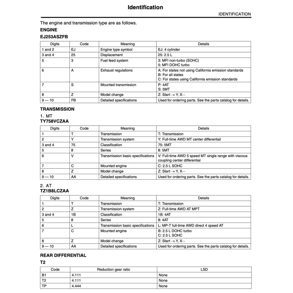 ENGINE COVERED IN THIS MANUAL: 2.0 L EJ20 H4 turbo; 2.0 L FB20 H4; 2.5 L EJ25 H4; 2.5 L FB25 H4; 2.5 L EJ25 H4 turbo