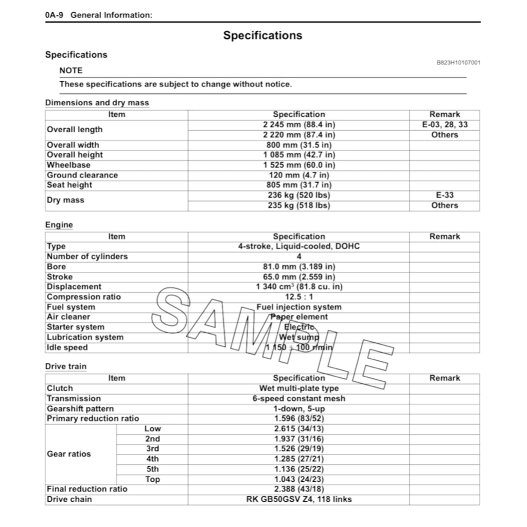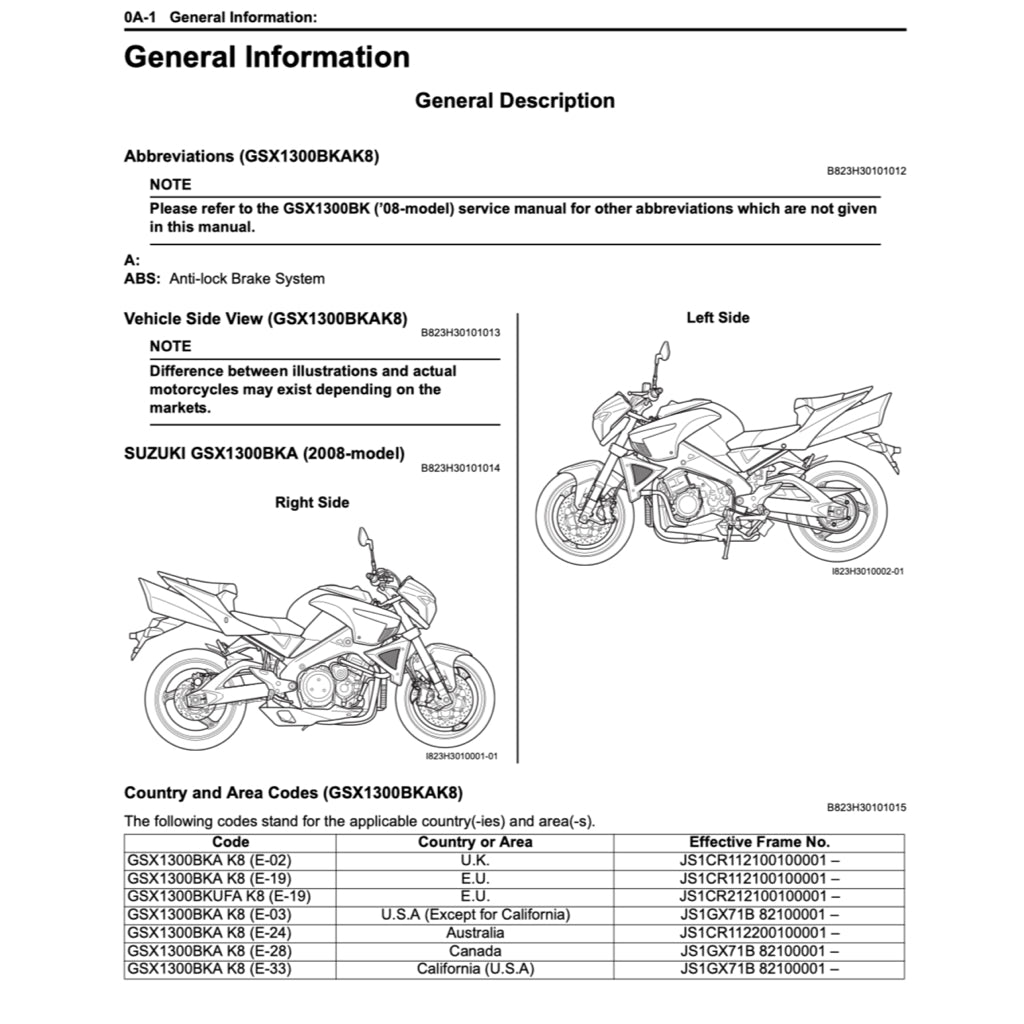 SUZUKI GSX1300BK/A B-KING 2008+ Full Manual Set – Repair & Maintenance Manual and User Handbook