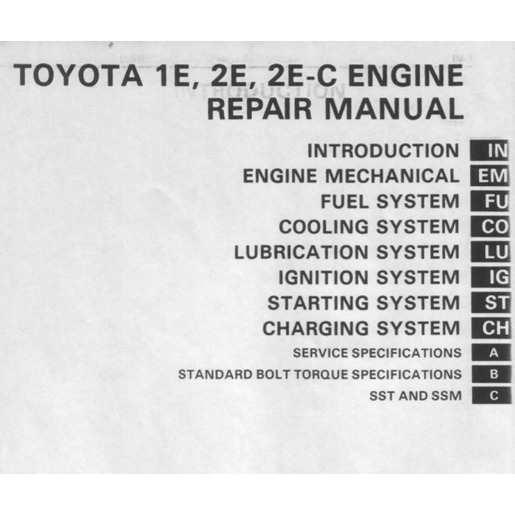 TOYOTA ENGINE 1E / 2E / 2E-C SERVICE REPAIR MANUAL IN PDF FORMAT (184 PAGES) .