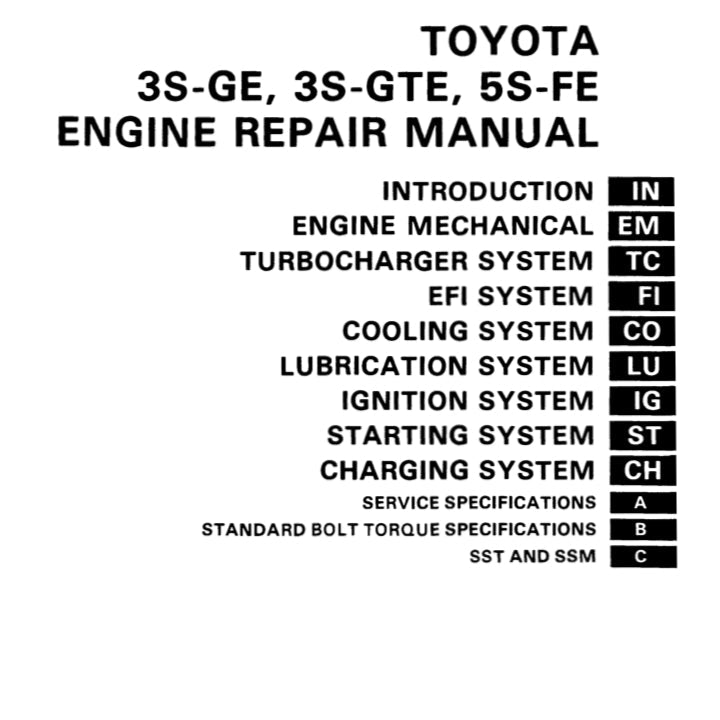 TOYOTA ENGINE 3S-GE / 3S-GTE/ 5S-FE SERVICE REPAIR WORKSHOP MANUAL