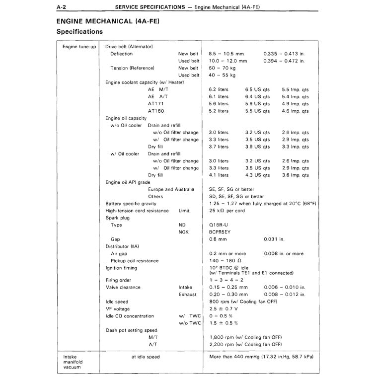 TOYOTA ENGINE 4A-FE SERVICE REPAIR WORKSHOP MANUAL