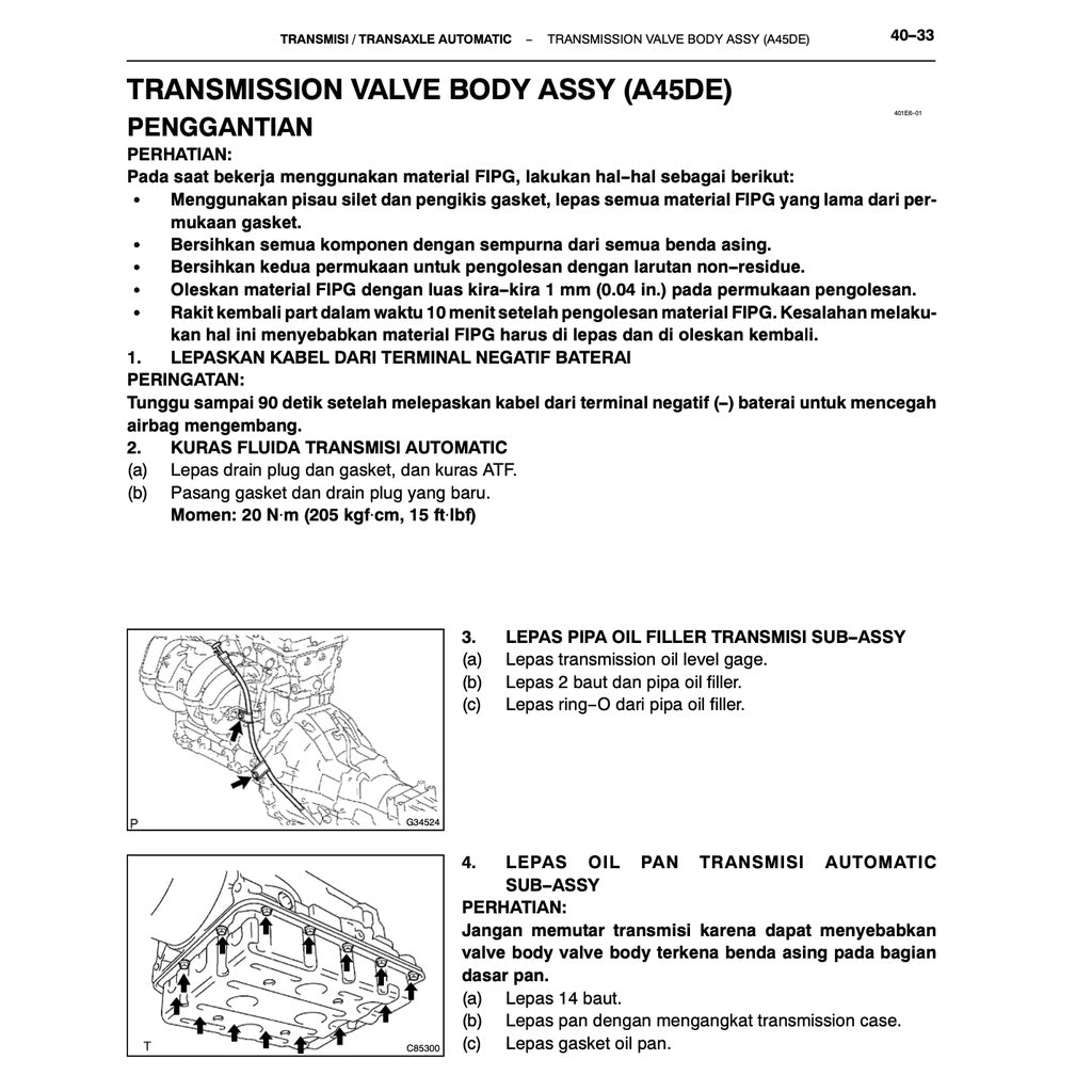 THIS IS THE HARD-TO-FIND BAHASA INDONESIA EDITION OF THE FACTORY MANUAL OFFERED TOGETHER WITH THE TOYOTA GSIC VERSION IN ENGLISH.