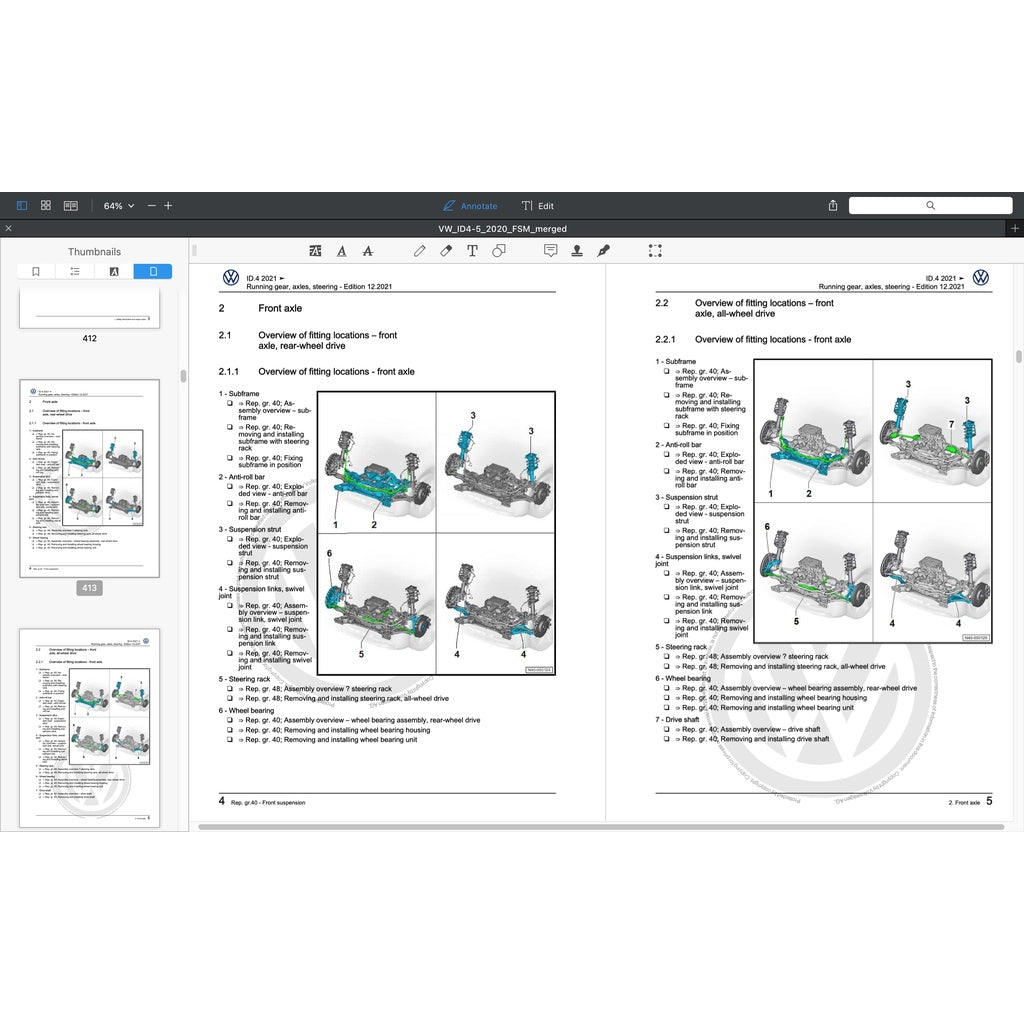 Not out just yet, hence for academic/learning purpose. This manual has VERY detailed HIGH RESOLUTION illustrations as well as step by step instructions. It goes in the smallest details of the VW ID.4/5 maintenance, servicing, repair, trouble shooting and fault finding. It is riddled with high resolution graphic pictures and diagrams, charts and tables for easy reference.