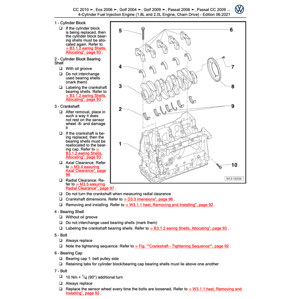 This is the same service manual your local VW dealer will use when doing a repair. This manual has detailed HIGH RESOLUTION illustrations as well as step by step instructions. Pages are printable, so run off what you need and take it with you into the garage or workshop. This manuals is your number one source for repair and service information. Each manual provides step-by-step instructions supported by hundreds of photos and illustrations guiding the reader through each service & repair procedure.