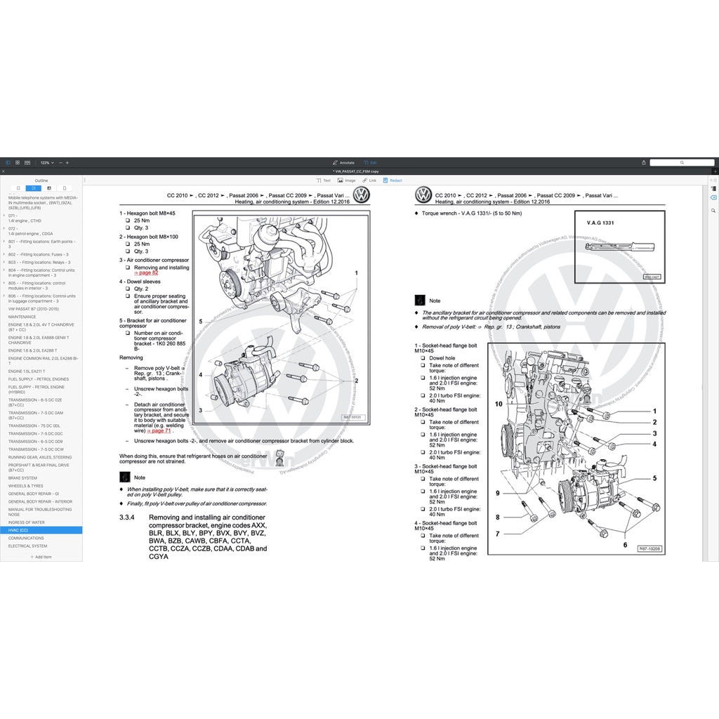 VW PASSAT CC 2008-2016 Full Manual Set – Repair & Maintenance Manual