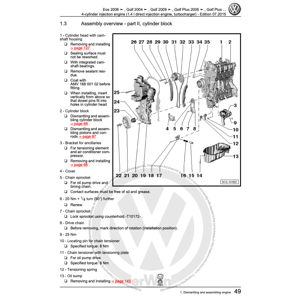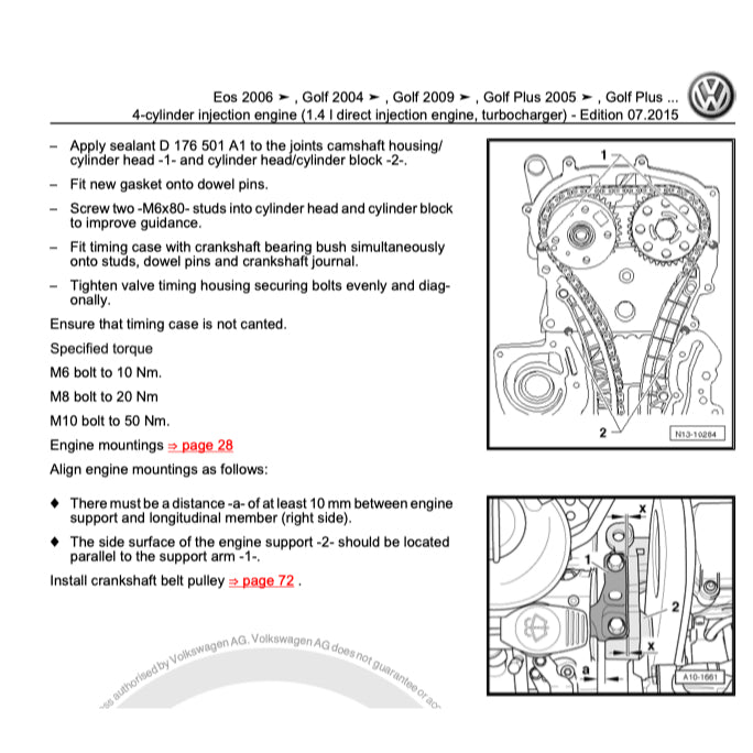 ENGINE COVERED IN THIS MANUAL: 1.4 L TSI I4; 1.8 L TSI I4; 2.0 L TSI I4 &. 2.0 L TDI I4