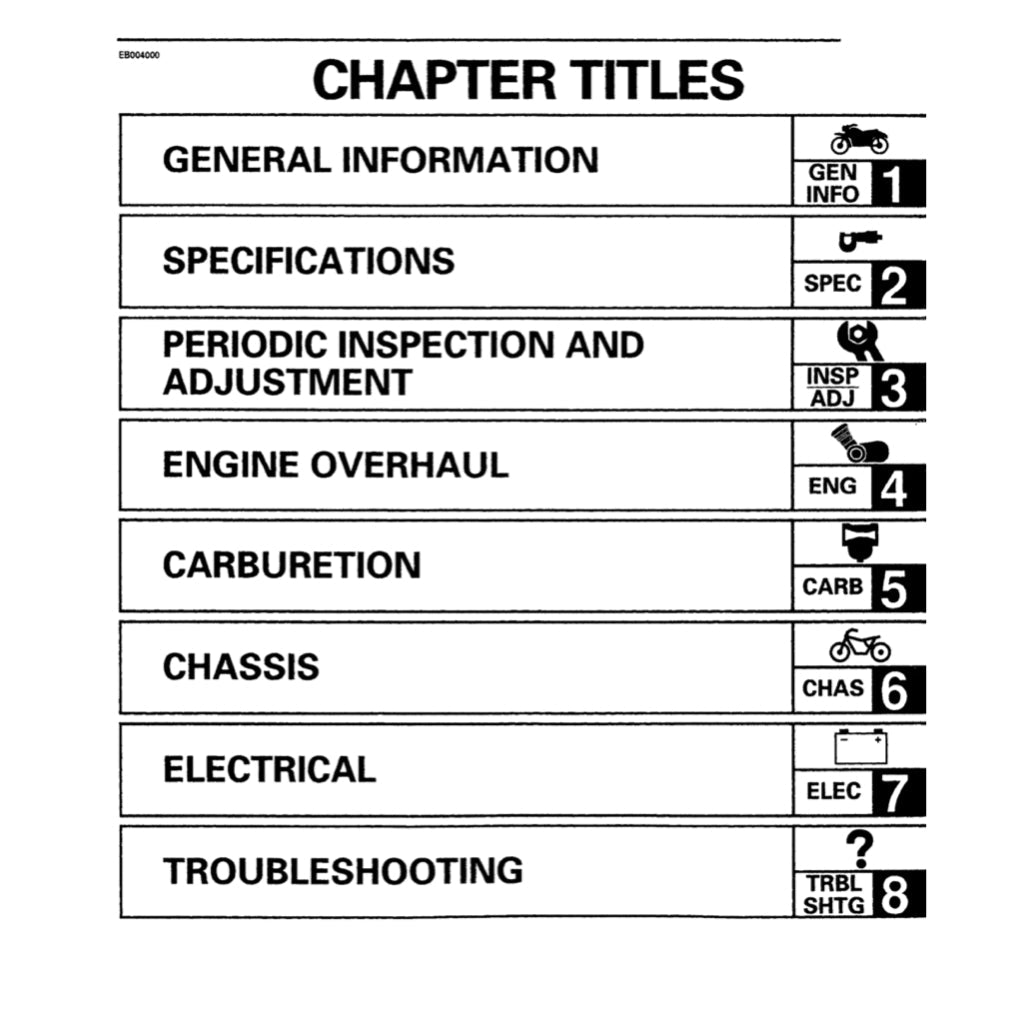 Comprehensive yet concise workshop manual for both technicians and DIY bike mechanic. This manual will help you restore and maintain your bike just like professional mechanic. Very easy step by step instructions with lots of diagrams and high resolution photos. Covers all aspects of the bike from engine to suspension, wheels, fuel supply, electrical and trouble shooting tips.