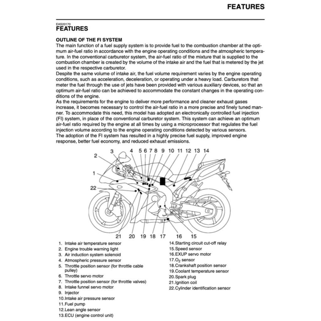 YAMAHA YZF-R1 2007-2008 Full Manual Set – Repair & Maintenance Manual and Spare Parts Catalog and User Handbook