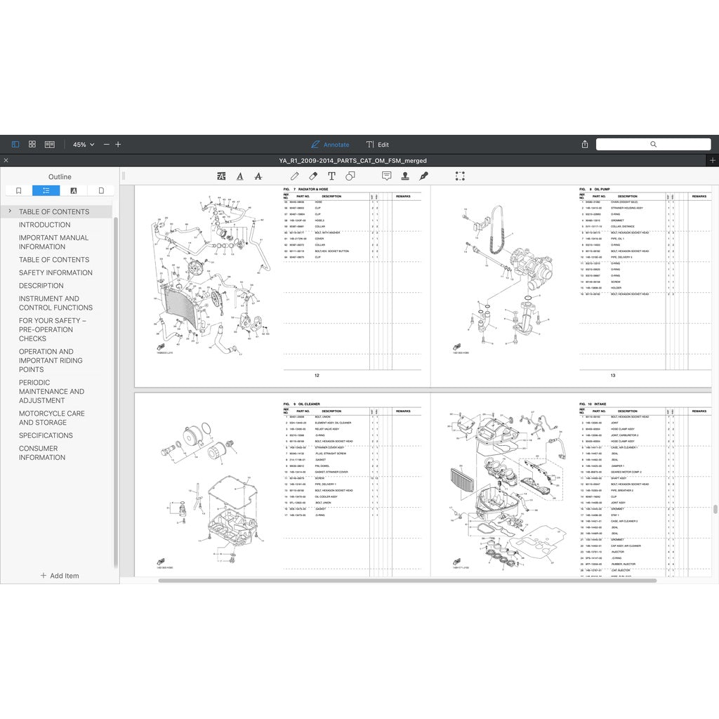 Yamaha YZF-R1 2012-2014 Full Manual Set – Repair & Maintenance Manual and Spare Parts Catalog and User Handbook